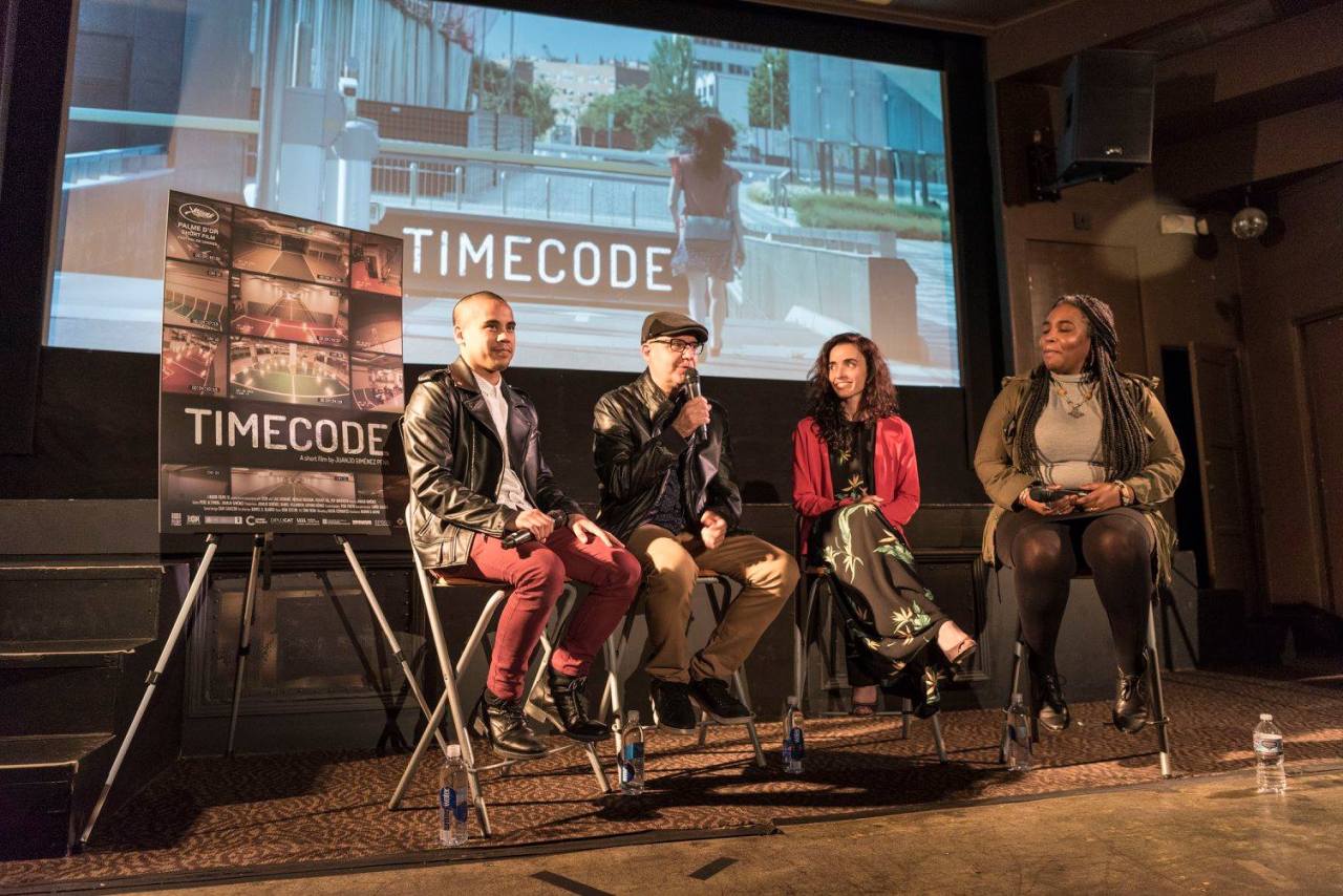 El equipo de TIMECODE en Los Ángeles. Aquí Juanjo Giménez, Lali Ayguadé y Nicolas Ricchini en la charla posterior a la proyección de TIMECODE en Los Ángeles